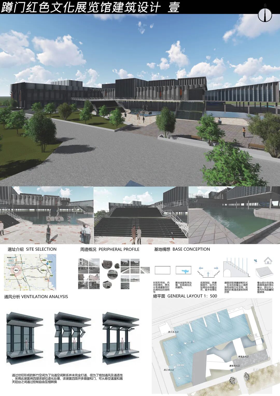 随着我国经济的高速发展,人们对精神世界的追求显得尤为重要。为了给丰富蹲门村以及附近人们的精神世界,蹲门村拟建红色文化艺术展览馆。一方面丰富蹲门村的旅游资源,另一方面,也继承成了蹲门村的物质文化遗产、宣扬了蹲门村的非物质的文化遗产。设计出符合蹲门村当地风土人情、与城市肌理相符合的文化建筑,同时还能满足人性化可持续发展的需求。