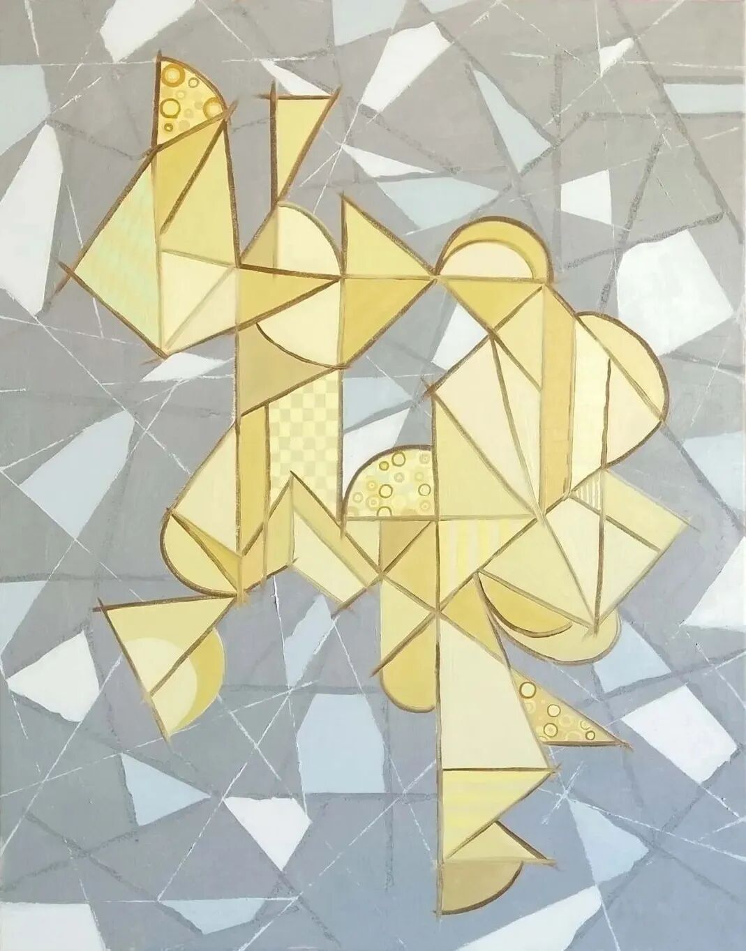 创作理念:通过学习莫兰迪灰色调的变化与统一,以及立体主义绘画中对视觉、空间、时间的剖析,进行毕业作品《灰调》系列的绘制。创作时运用不同材料制作不同效果的肌理与形象造型相结合,以达到“象外有象”的艺术效果。灰色调的静逸与肌理呈现的律动相互碰撞,表达创作时矛与盾、静与燥之间来回转换的内心情感。