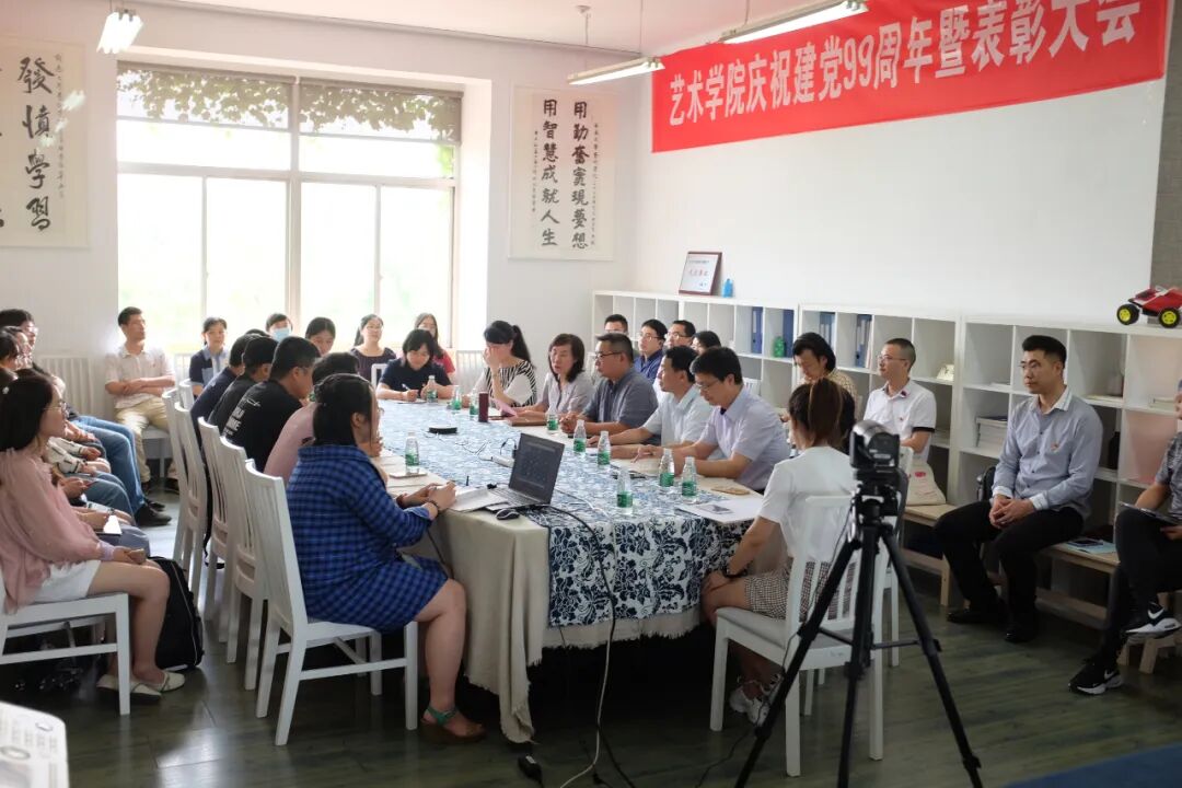 6月30日下午,在“七一”来临之际,艺术学院于线上线下同期、隆重举行庆祝建党99周年暨“七一”表彰大会,这是一次不一样的大会。学院全体领导班子成员、全体支部书记、支部委员及受表彰师生出席线下大会,学院全体党员于线上腾讯视频会议室同期参会,会议由院党委副书记、副院长沈江主持。