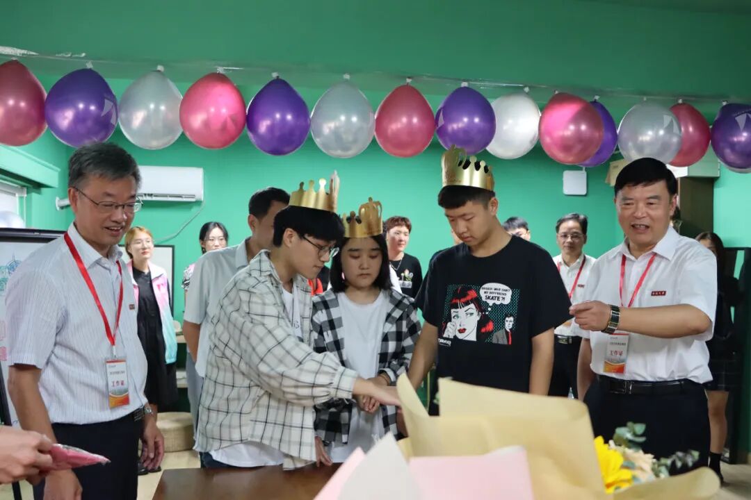 9月20日下午,艺术学院在美术馆为开学当天生日的小萌新集体庆生。来自山西、河南、贵州三位幸运儿参加了集体生日会。校长施卫东,校党委常委、副校长侯文华,党办校办主任吴如高,学工处副处长张雪松,以及艺术学院全体领导、辅导员、班主任等和他们一起度过了一个特别的、意义非凡的生日。施校长特地来看望今天过生日的同学并表示热烈欢迎和热情祝福,学院院长张卫向同学们表达了生日的祝福并提出了殷切的希望。随后,学院学生会的学长学姐们给新生赠送了小礼物,学工处和院领导也为“小寿星”们送上了蛋糕、小礼物以及具有艺术学院特色“大礼包”,让萌新们切实的感受来自学院的关怀。收到礼物的环境设计201班申振宇笑着说:“学校太暖心了,给了这么一个生日惊喜,真是太惊喜了,太终身难忘了!”