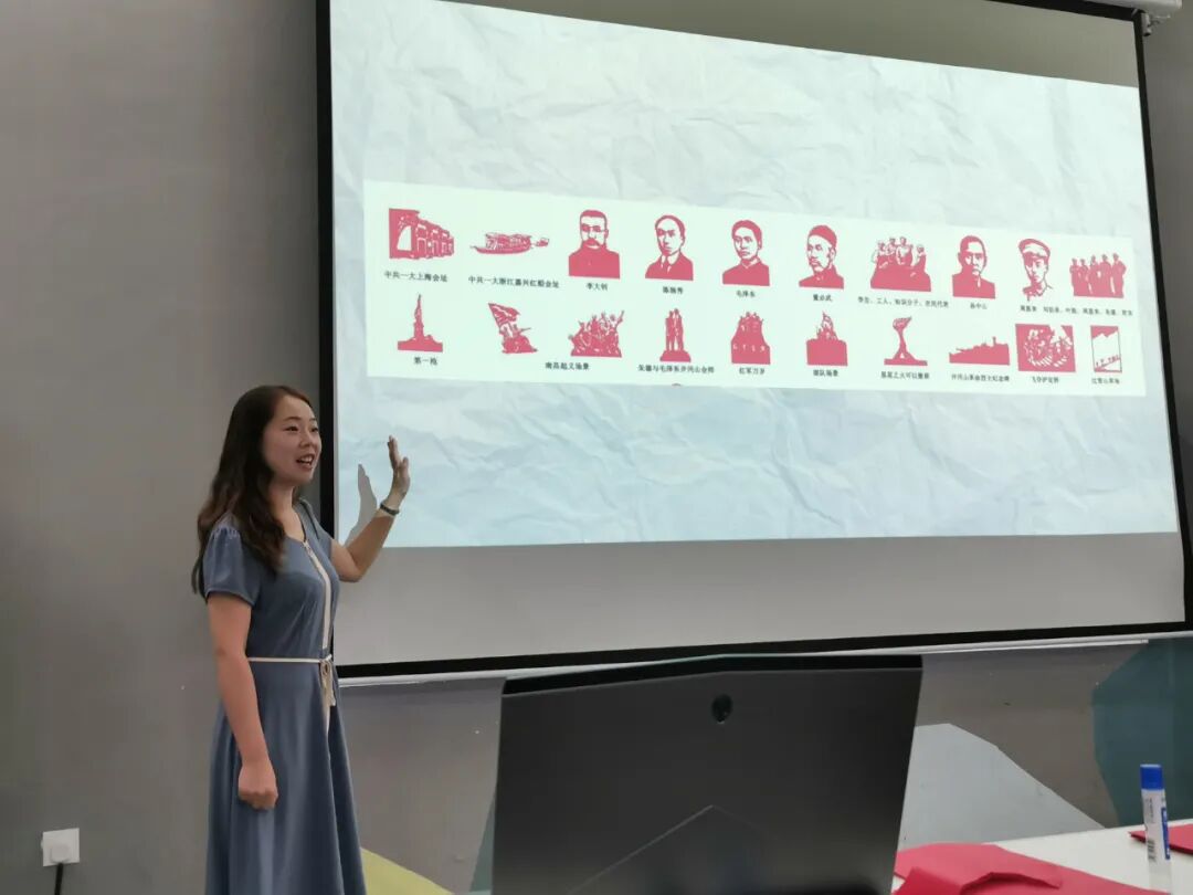 为了生动体现非遗文创的设计理念,本节课还邀请了撕纸传承人翟天麟老师进行现场解读与示范。她向同学们介绍了传统的撕纸技艺与创作中的红色文化非遗撕纸,并以现场撕纸教学的模式带领大家进行主题创作。同学们热情高涨,纷纷动手进行撕纸创作,用生动的作品诠释了“星星之火可以燎原”的主题。
