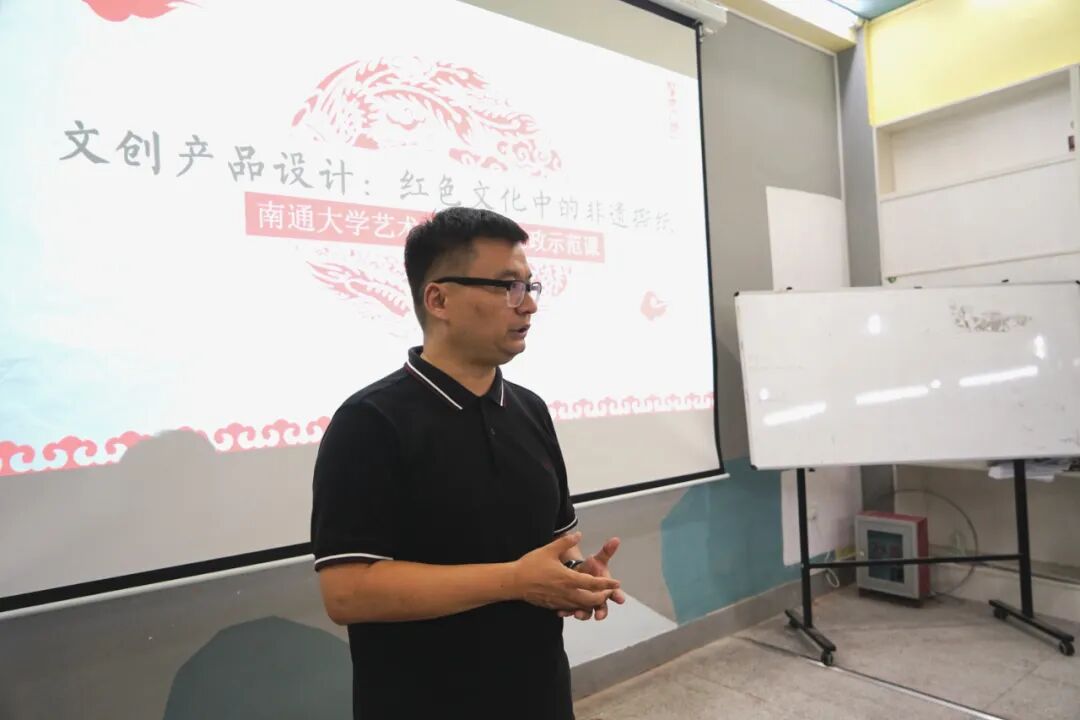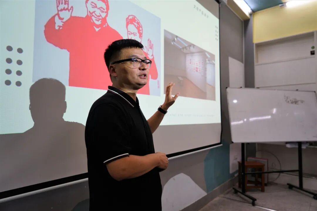 本节课的主要内容是“红色文化中的非遺撕纸”。主讲教师黄天灵副教授以文创产品设计中非遗的创意应用为背景,系统介绍了我国传统非遗项目,如南通蓝印花布制作技艺、板鹞风筝制作技艺、苏州桃花坞木版年画、广东醒狮制作、陕西皮影戏、徐州撕纸等优秀的非遗技艺。他从形式表现、构图布局、色彩搭配、寓意内涵等方面,分析了非遗在文创产品设计中的创新应用。