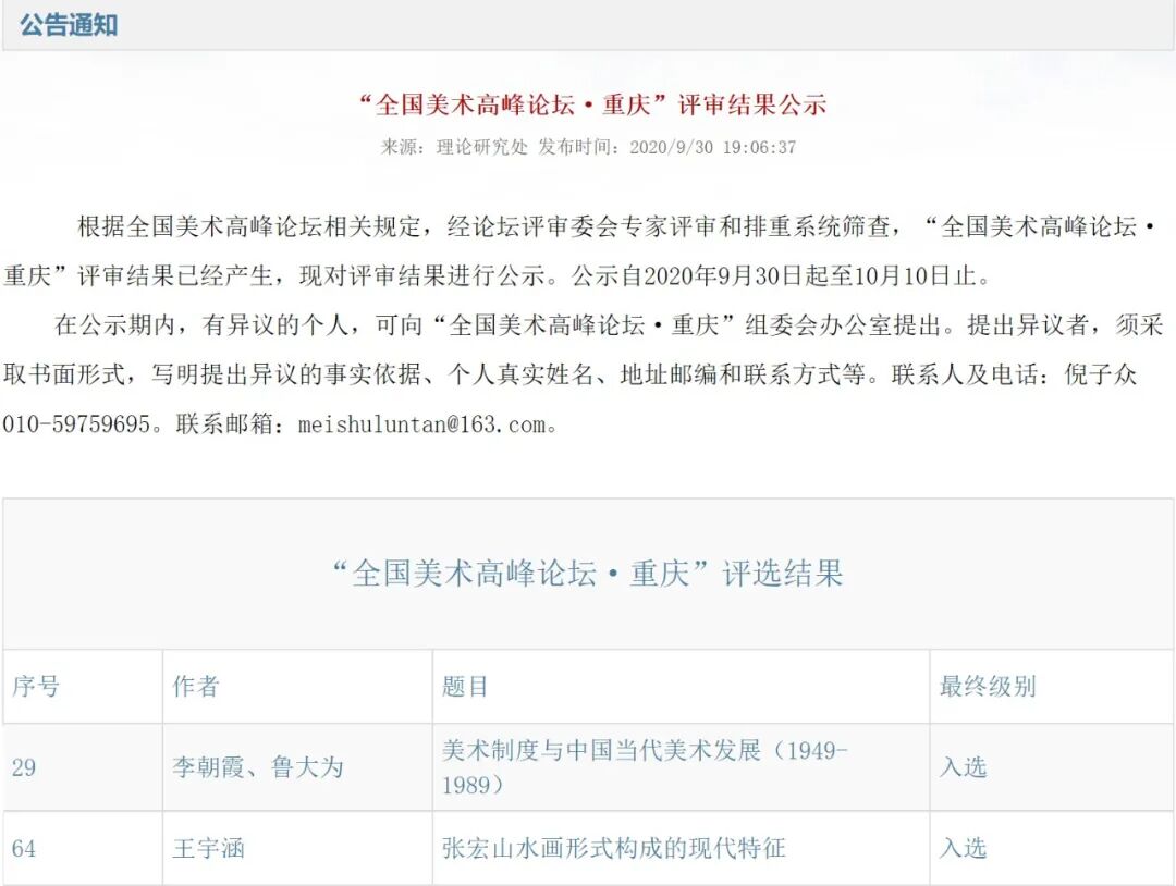 附:全国美术高峰论坛评审结果公示链接https://www.caanet.org.cn/newsdetail.mx?id=7808