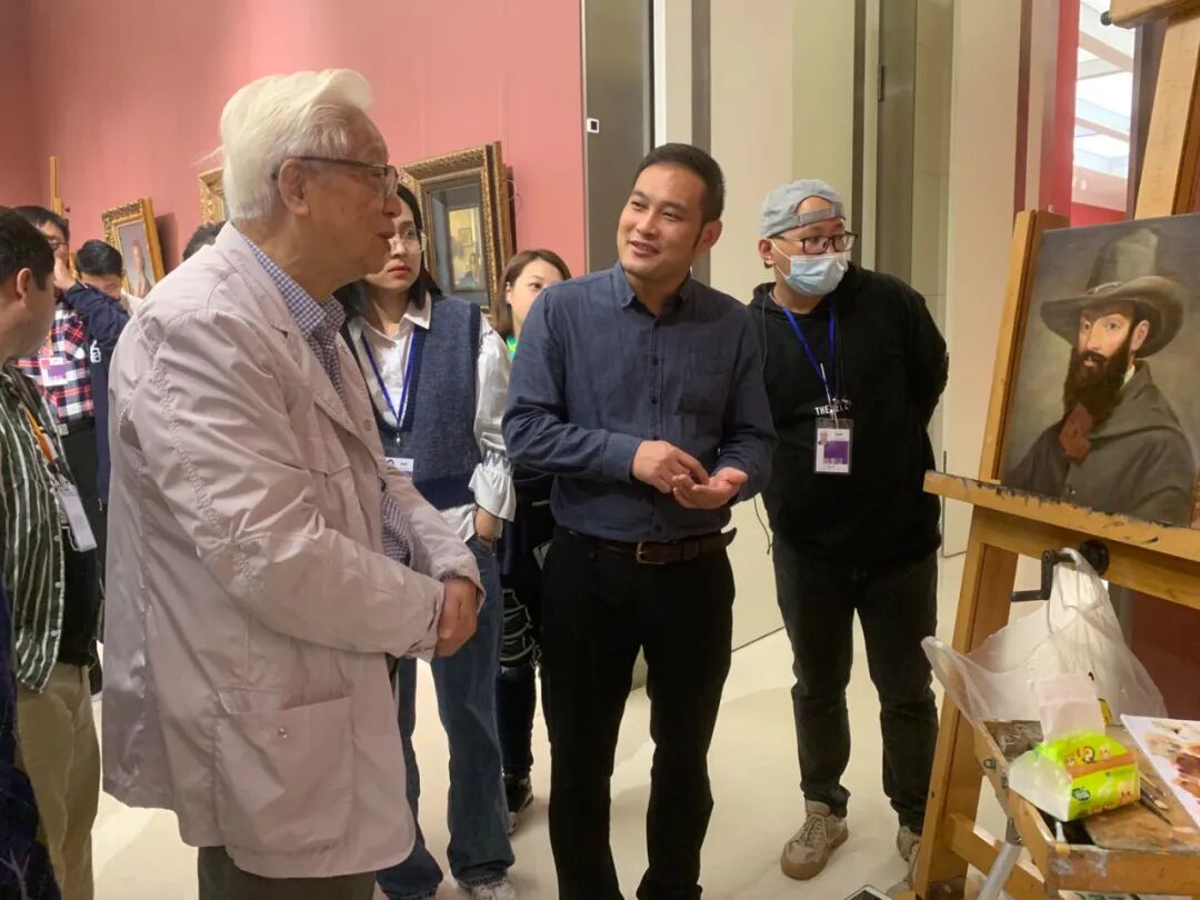 作品点评之后,全山石先生邀请大家来到艺术中心贵宾厅交流座谈。本次项目执行人我院江严冰副教授向全山石先生详细介绍了实施本次项目的初衷以及筹备、开课情况,并向全山石先生能白百忙之中抽空指导学员表达了谢意。全山石先生对南通大学艺术学院作为地方综合性大学能如此注重油画语言和技法材料的研究深表赞许,随后全山石先生向师生们分享交流了自己的绘画经验、经历、感受,介绍了艺术中心的办馆宗旨,对油画的本体语言等概念进行了解读,鼓励学员们要把西方油画技法学到手,再注入生活、文化和个人情感,创作出具有时代精神、民族特色和具有个性风格的油画。最后学员们把在油画方面困扰自己的一些问题提出来向全山石先生进行请教。学员们纷纷表示,全教授耄耋之年不辞辛劳创办艺术中心,把自己对油画的理解认知倾囊相授,让后学获益匪浅,不虚此行,在今后的绘画中应重视研究油画的语言和技法,学会尊重艺术规律,理解性地观察和表现对象。