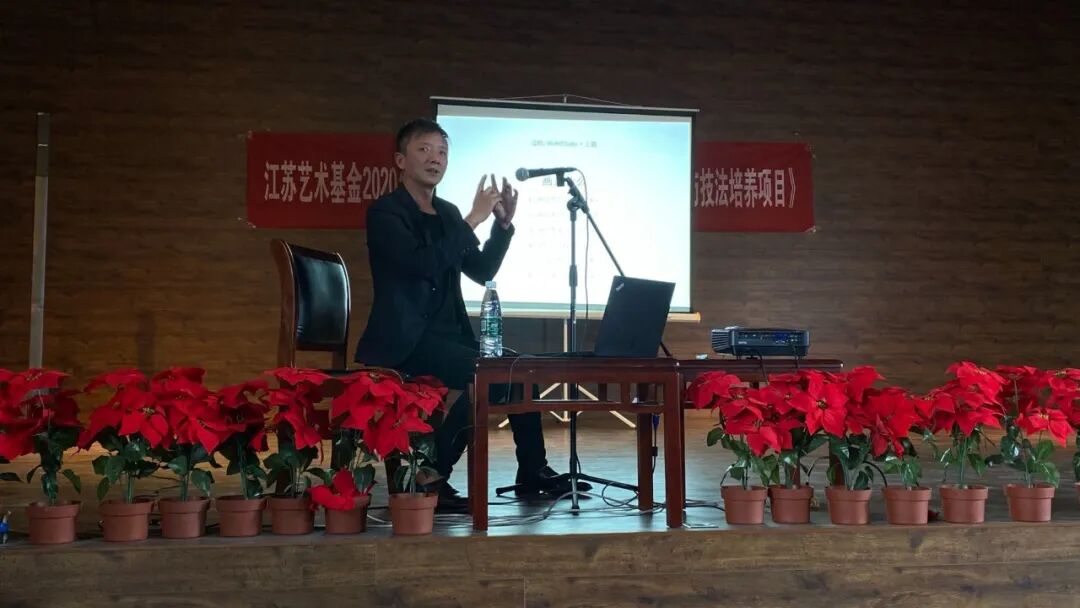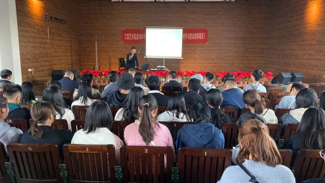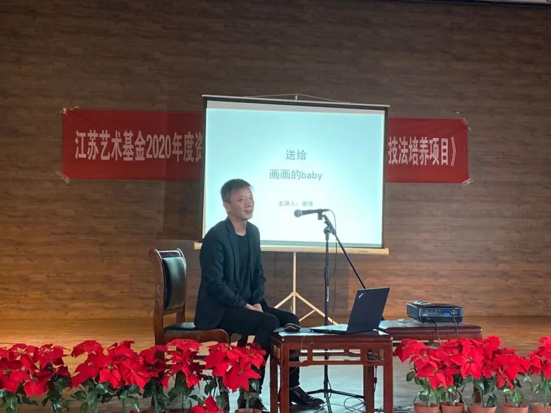 10月24日下午,著名策展人、文化学者、美术评论家、南通大学艺术学院兼职教授谢海于南通1895文化产业创意园为江苏艺术基金资助的“江苏省青年油画家油画材料与技法培养项目”学员做讲座。项目负责人江严冰主持讲座,全体项目学员以及艺术学院师生代表听取讲座。