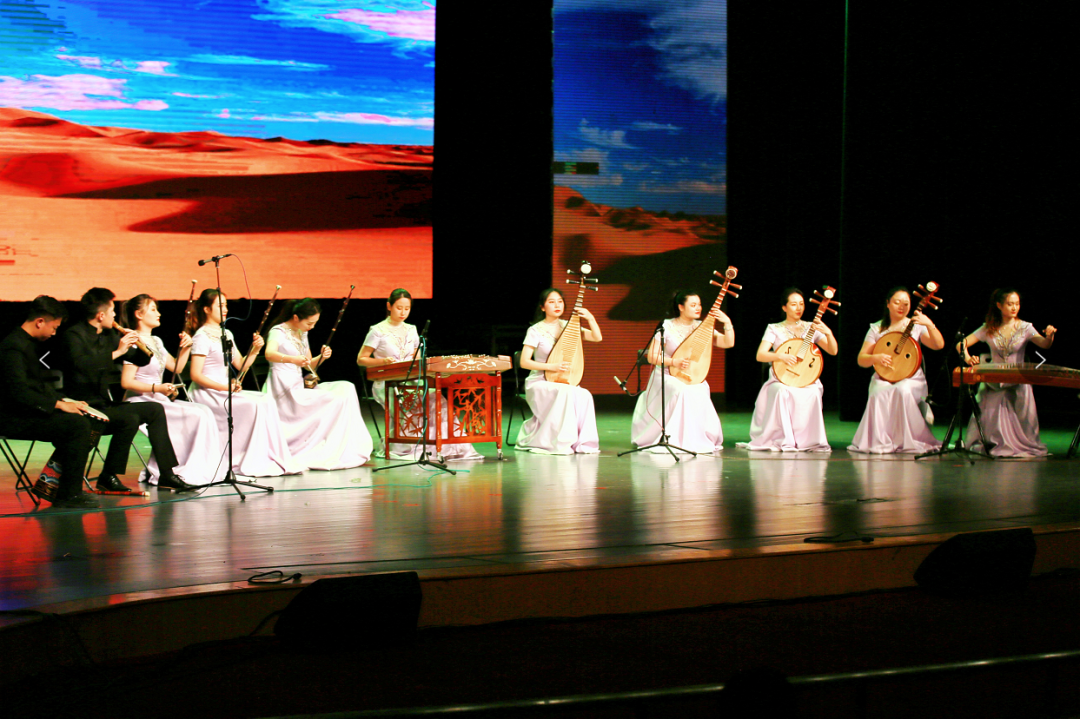 江苏航运职业技术学院党委书记袁卫国致辞。他指出,本次专场音乐会的举办,既是地方高校之间深入地交流艺术活动、探讨艺术传播的躬亲实践,更是地方高校积极地提升高校学子艺术素养、道德情操的笃实力行,希望本次活动的开展能够进一步增进广大师生对高雅艺术的热爱,进一步提升对审美价值的追求。在一个半小时的演出中,南通大学大学生民族乐团的师生们用精湛的艺术技能、执着的艺术热情上演了一场视听盛宴。演出汇聚了古筝、琵琶、二胡、竹笛、鼓等多种民族乐器,通过独奏、重奏、合奏的艺术组合,配以舞蹈、演唱、音乐等艺术形式,淋漓尽致地展现了中国传统民族艺术的精髓与内涵。