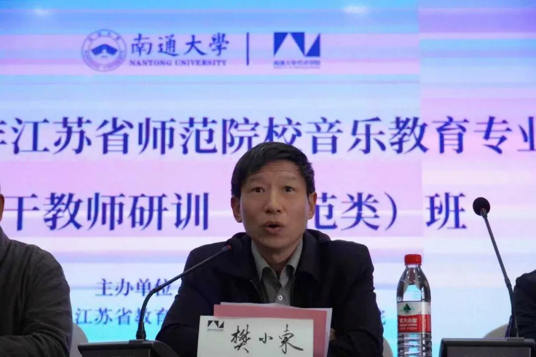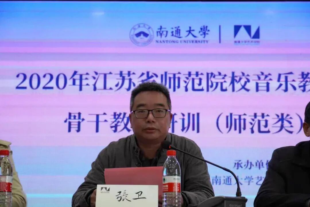 张卫作开班动员。他指出,本次培训班的举办,既是系统提升教师艺术素养的必要举措,更是契合新时代美育育人号召的生动实践。希望全体学员用心珍惜学习机会,主动融入研训环境,积极探索艺术问题,深入交流教育经验,在本次学习中不断更新新时代艺术教师的崭新形象。研训班学员代表、江苏师范大学教师张佳琪在典礼上作表态发言,并号召大家潜心研究、虚心请教、耐心学习,通过系统的学习沉淀成就丰盈的教育理想和艺术理想。本次培训班由江苏省高校师资培训中心主办,南通大学承办。旨在加强高校教师队伍建设,提升师范院校教师的综合能力和素养。在为期4天的集中培训中,将安排专家讲座、观摩学习、交流研讨等具体活动。开班典礼后,南京师范大学音乐学院的向文教授以“师范思想引领下的高校音乐教师职业定位与核心素养生成”为主题为全体学员做本次研训班的首场讲座。