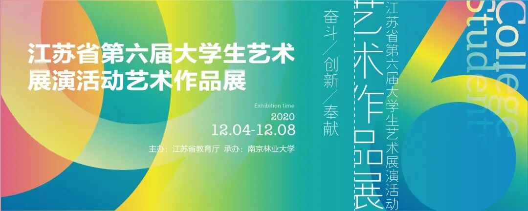 2020年12月4日,江苏省第六届大学生艺术展演活动艺术作品展于南京林业大学拉开帷幕。本届大艺展以“奋斗•创新•奉献”为主题,通过发掘江苏历史文化资源和学习借鉴人类文明优秀成果,传承与弘扬中华优秀传统文化,展现青春奋斗的激情、勇于创新的智慧和甘于奉献的家国情怀。