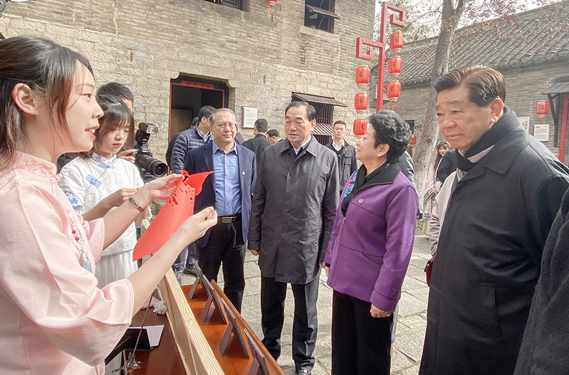 近日,第十六届、十七届中央政治局常委,第十届、十一届全国政协主席贾庆林,江苏省政协主席黄莉新赴徐州民俗博物馆翟家大院调研民俗文化发展情况。我校艺术学院撕纸艺术工作坊指导教师翟天麟,艺术学院工业设计191班张馨月、视觉传达设计202班郭哲皙作工作坊工作汇报和成果展示。