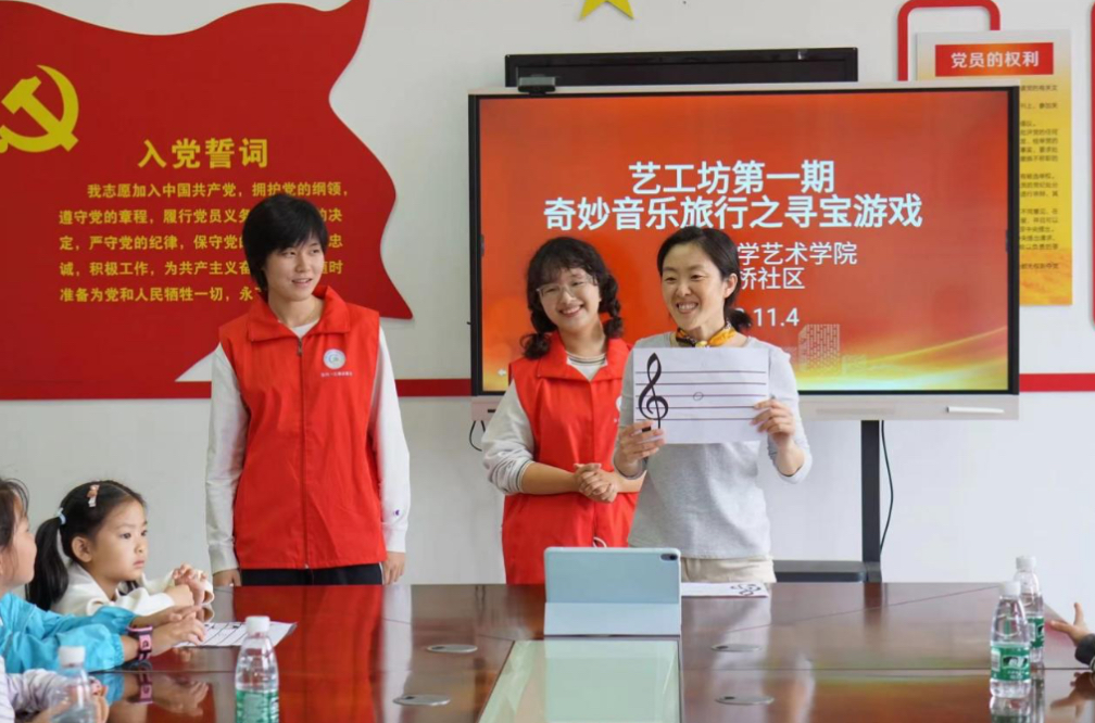 随着社会的发展和进步,人们越来越注重随迁子女的身心健康,在对这些孩子进行培养的过程中,政府也提供了相应的措施和政策,为了深入了解随迁子女发展的情况,南通大学艺术学院志愿团队在青龙桥社区开展了一系列的音乐工艺坊活动。在音乐中帮助困难儿童接受美育教育,让困境儿童体会到社会的关爱,对他们的人生起到积极的导向作用。2023年11月4日,音乐系志愿团队开展了第一期的志愿活动。通过游戏展开,以探秘的形式带领孩子们学习相关音乐知识,在探险的过程中,激起孩子们的正义感和责任感,从而帮助孩子们树立正确的价值观。过程中孩子们学习一些简单的音乐知识,如音阶的唱名、五线谱的认识及奥尔夫节奏训练等。